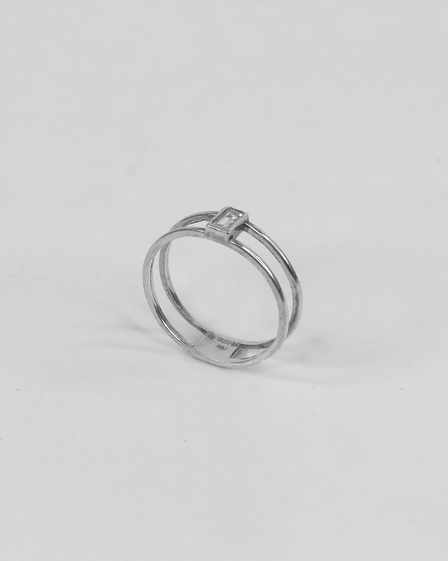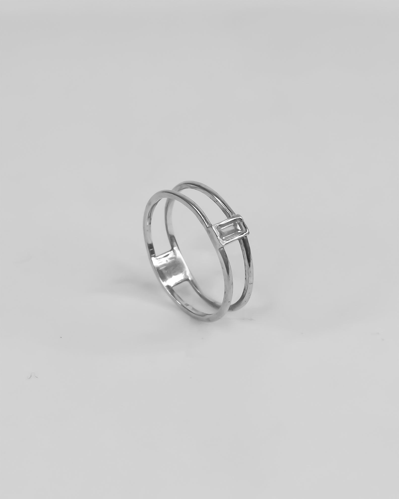 Crafted in 925 sterling silver, the Parallel Calm ring features two sleek parallel bands connected by a subtle square accent, creating a sense of balance and quiet strength. The clean, structured design feels modern yet timeless, making it easy to wear every day. Finished with a smooth high polish, this fixed ring offers a comfortable fit while standing out with understated elegance. A refined silver piece by Muskan The Jewel, designed for calm, confident styling.