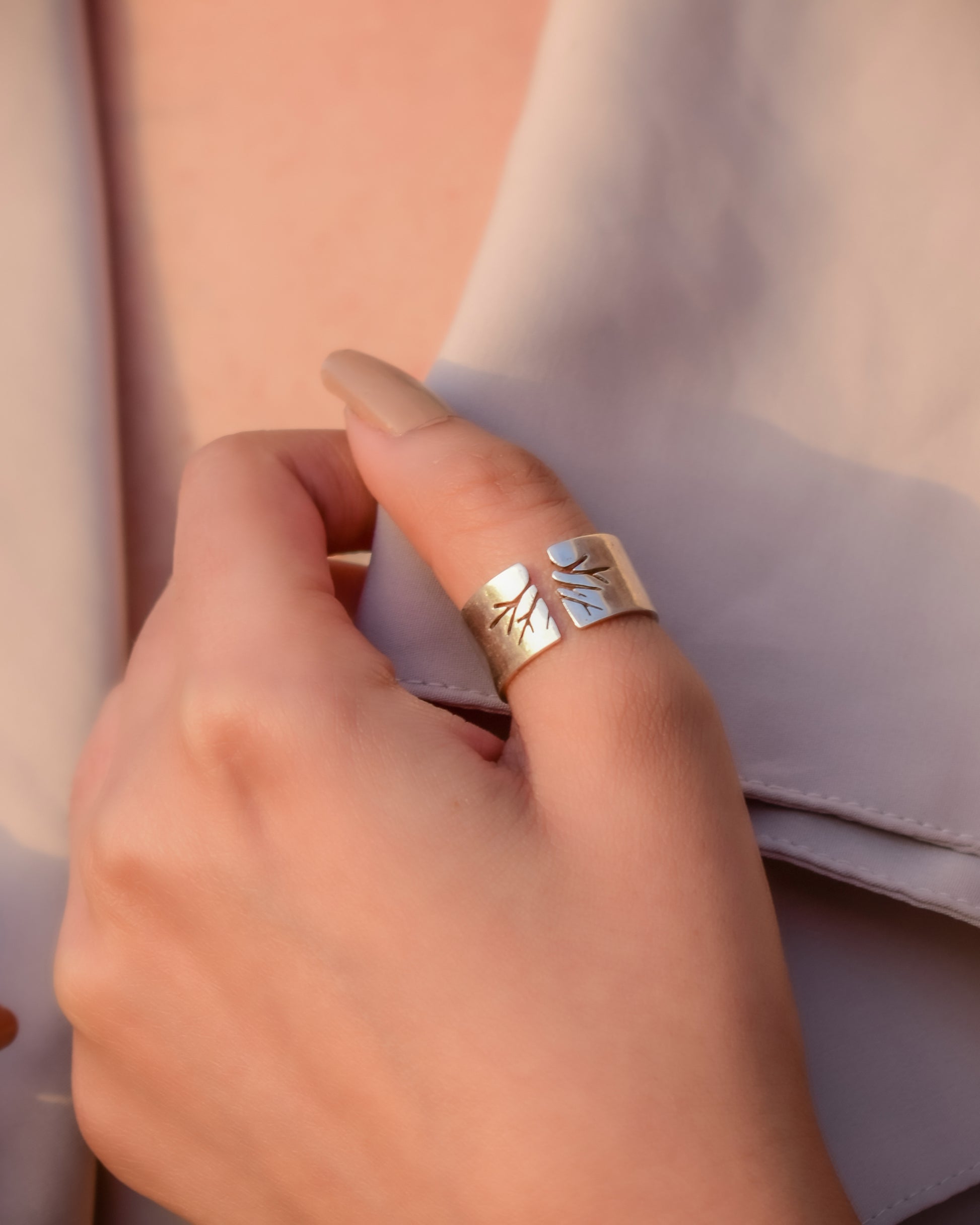 Crafted in 925 sterling silver, the Tree of Calm ring features a serene open-band design inspired by the strength and balance of a tree. The smooth surface and subtle form create a calming, minimal look that’s easy to wear every day. Designed with an adjustable fit, it offers comfort and flexibility while maintaining a refined finish. Thoughtful yet understated, this ring reflects quiet elegance and timeless simplicity by Muskan The Jewel.