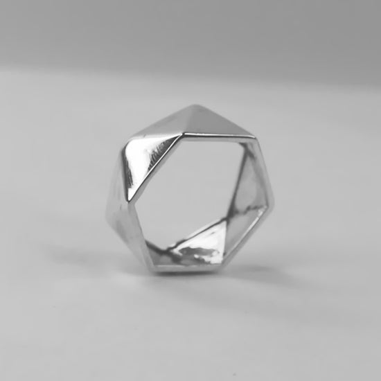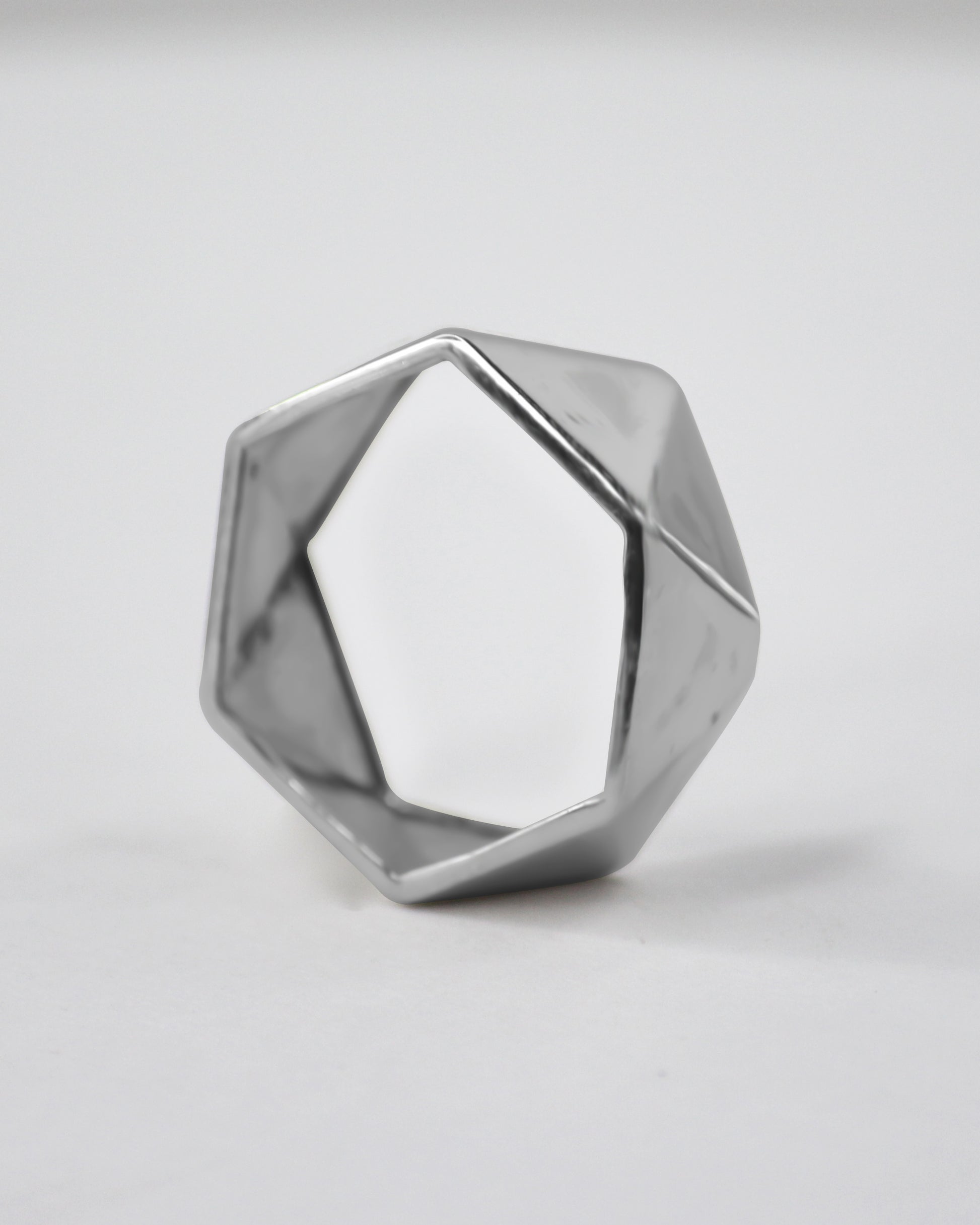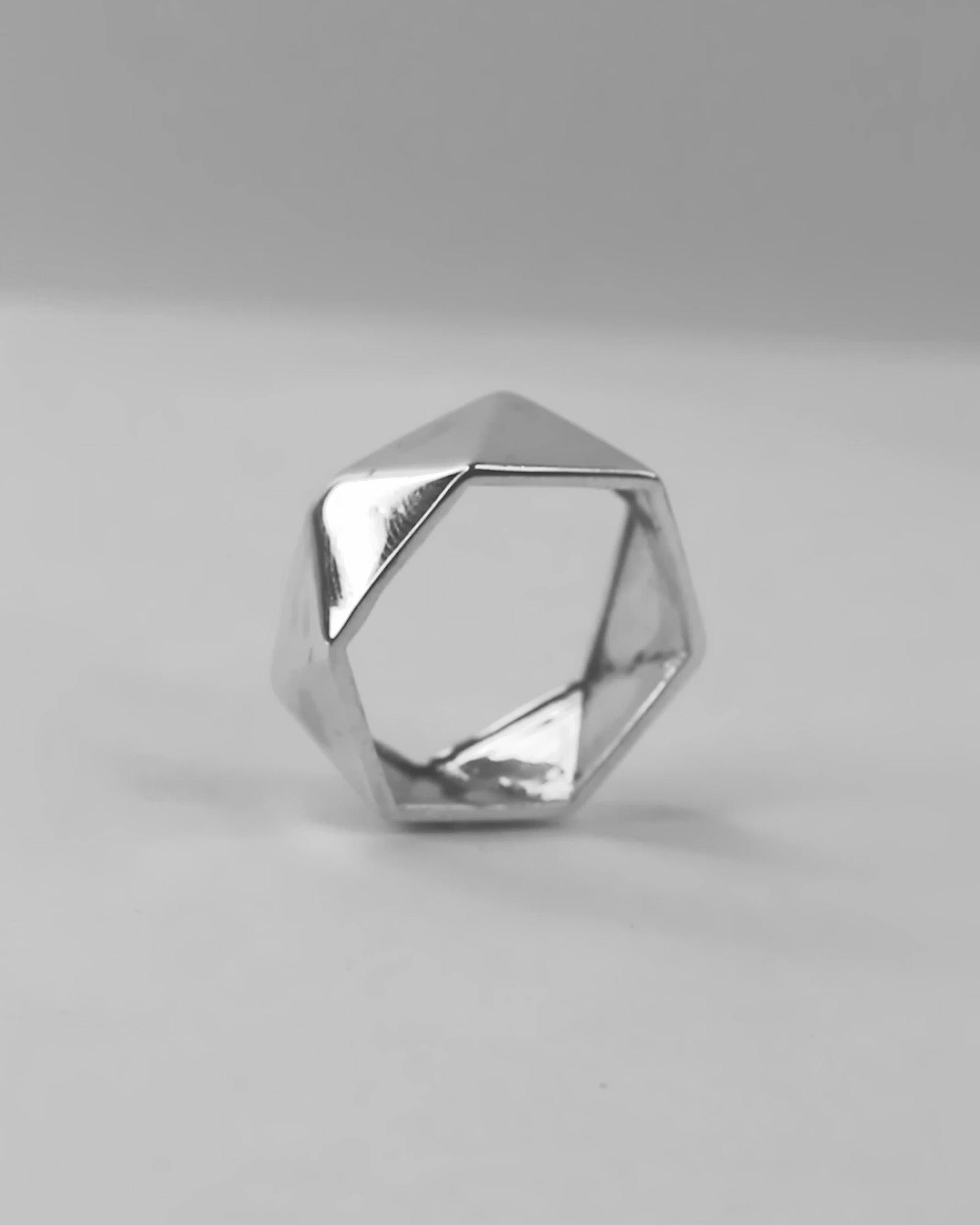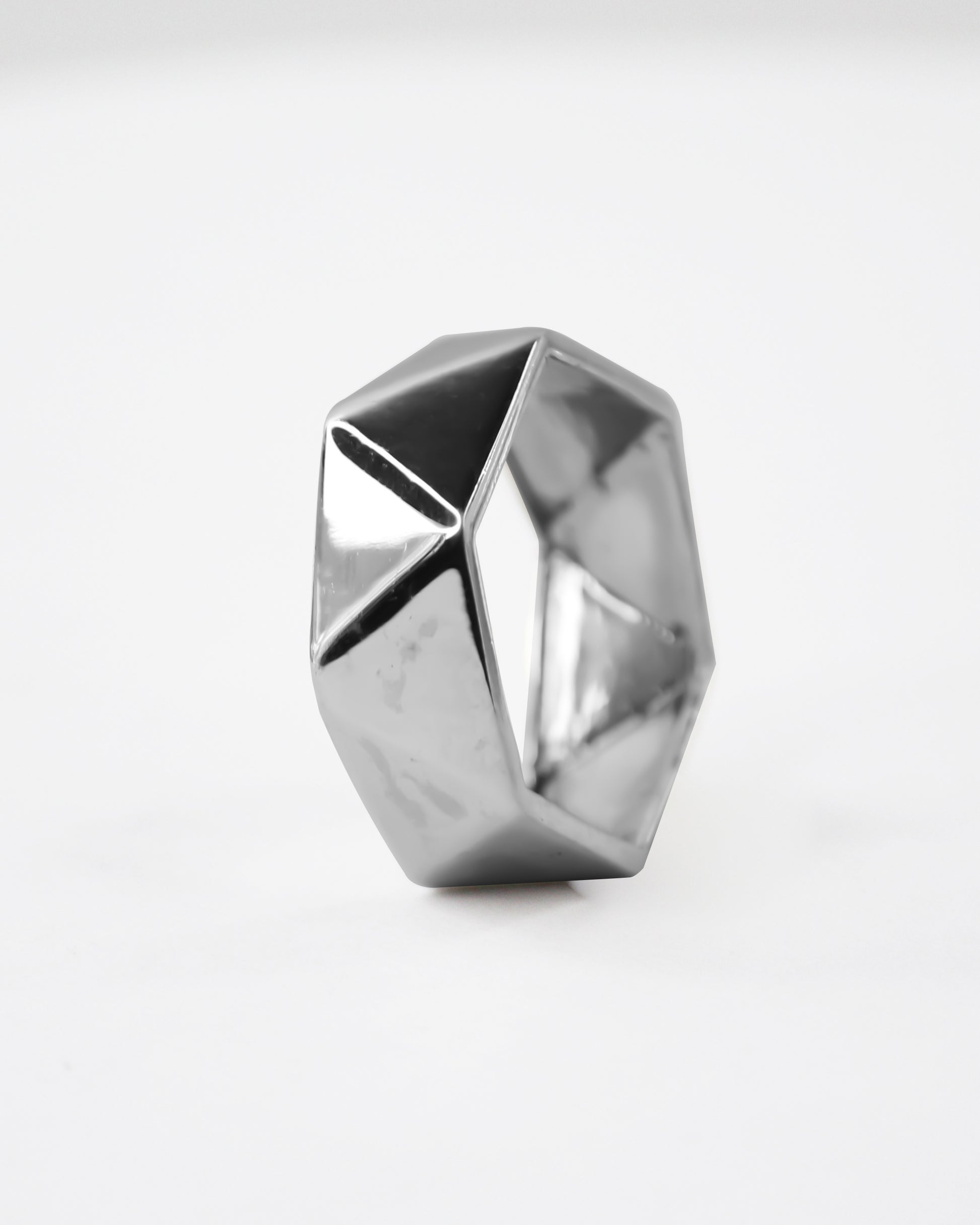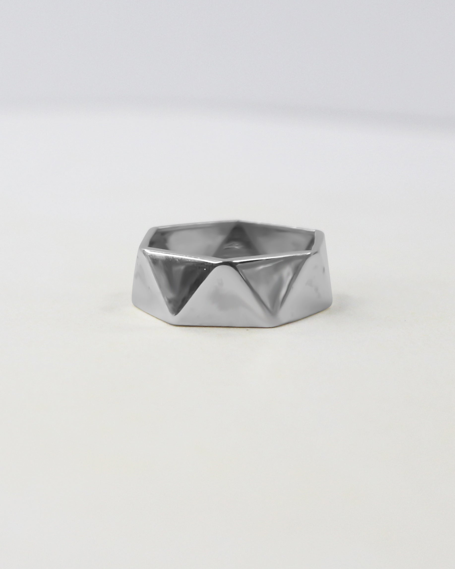 Crafted in 925 sterling silver, the Vanguard Silver Ring is defined by bold geometry and sculpted precision. Its faceted surface reflects light across sharp angles, creating depth and structure from every view. The architectural form gives it a powerful presence while maintaining a refined, wearable silhouette. Designed for men who lead with confidence, this ring is a modern statement — strong, distinctive and unapologetically structured.